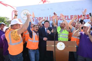 Başkan Aşkın Tören’in 5 ekimde imzaladığı toplu iş sözleşmesiyle belediye işçilerine verdiği 170’e varan rekor zamlı maaşlar 12 Ekim gece yarısından itibaren çalışanların hesaplarına aktarıldı. 13 Ekim sabahı zamlı maaşlarını geriye dönük farklarıyla birlikte toplu olarak hesaplarında gören emekçiler büyük sevinç yaşadılar.