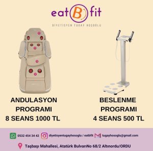Bu fırsatlardan yararlanmak isteyenler, Taşbaşı Mahallesi Atatürk Bulvarı No: 68/2 Ordu Altınordu adresindeki eat B fit Diyetisyen kliniğine başvurabilirler.